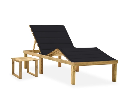 Šis koka sauļošanās krēsls ar matraci un galdiņu ir stilīgs un praktisks. Tas jūsu āra teritorijai piešķirs dabīgu šarmu.