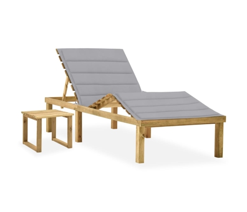 Šis koka sauļošanās krēsls ar matraci un galdiņu ir stilīgs un praktisks. Tas jūsu āra teritorijai piešķirs dabīgu šarmu.