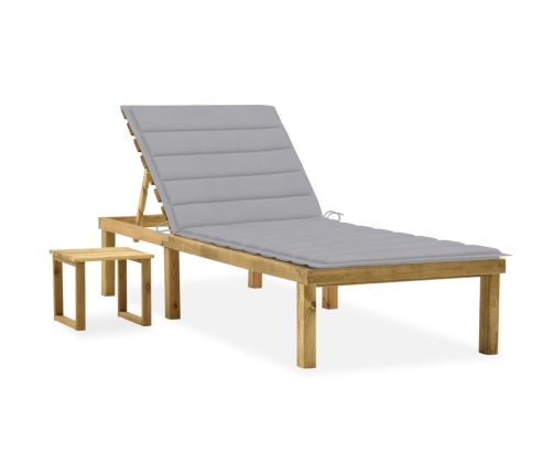 Šis koka sauļošanās krēsls ar matraci un galdiņu ir stilīgs un praktisks. Tas jūsu āra teritorijai piešķirs dabīgu šarmu.
