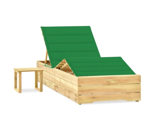Šis koka sauļošanās krēsls ar matraci un galdiņu ir stilīgs un praktisks. Tas jūsu āra teritorijai piešķirs dabīgu šarmu.