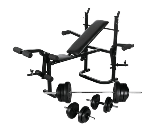Universālais svarcelšanas sols ar statīvu, hantelēm un svara stieni ļaus veikt vingrinājumus dažādām muskuļu grupām. Tas noteikti noderēs visiem svarcelšanas iesācējiem. Veiciet stieņa spiešanu guļus, kāju saliekšanas, vēdera preses un vēdera vingrinājumus, izmantojot mūsu svarcelšanas solu!