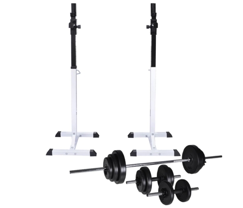 Šis izturīgais un stabilais svaru stieņa/svarcelšanas statīvs ar komplektā iekļauto svaru stieni un hantelēm ir lieliski piemērots treniņiem mājas sporta zālē! Kombinācijā ar treniņu solu tas būs piemērots stieņa spiešanā guļus treniņiem, kā arī pietupieniem.
