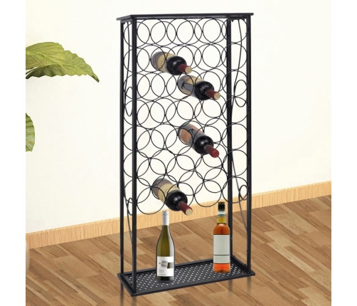 Šis uz grīdas liekamais vīna pudeļu plaukts izcelsies jebkurā vietā. Tas ir izgatavots no kaltas dzelzs ar pulverkrāsas pārklājumu, tāpēc tas nerūsēs un kalpos jums gadiem.