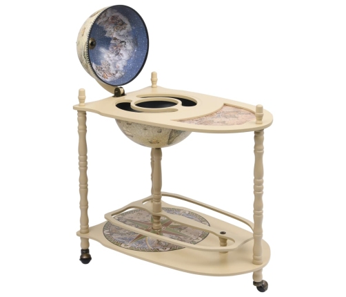 Globusa formas bāra ārpusē ir sens jūras kartes zīmējums, savukārt tā galdiņš, pamatne un iekšpuse ir izdekorēta ar renesanses laikmeta zīmējumiem. Šis vīna pudeļu turētājs ir īsts mākslas darbs, kas skaisti papildinās jūsu mājas vai biroja interjeru.