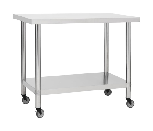 Šis darba galds ir izgatavots no nerūsējoša tērauda, tāpēc tas ir nenolietojams. Tā gludā virsma ir izturīga pret koroziju, un to ir viegli tīrīt. Galda apakšējā nodalījumā ir daudz vietas dažādu priekšmetu uzglabāšanai. Darba galdam ir 4 kustīgi ritentiņi, tāpēc jūs viegli varat pārvietot galdu. Diviem ritentiņiem ir bremzes, kas palīdzēs galdu novietot stabilā pozīcijā.