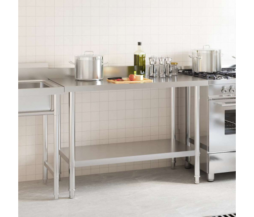 Galds ir izgatavots no īpaši kvalitatīva nerūsējošā tērauda, tāpēc to varēs izmantot visu mūžu. To ir viegli noberzt un notīrīt. Galdam ir ērts sienas panelis un pakšējais plauktiņš, kas nodrošinās papildu uzglabāšanas vietu. Regulējamās kājas ar neslīdošu pamatni sniegs lielisku stabilitāti un grīdas aizsardzību.
