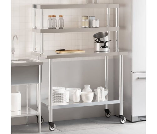 - Elastīga kustība: ēdiena sagatavošanas galdu ar 4 riteņiem var viegli un ērti pārvietot, kur vien nepieciešams. Divi no riteņiem ir bloķējami papildu kontrolei un drošībai.