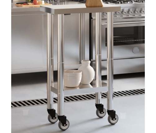 - Elastīga kustība: ēdiena sagatavošanas galdu ar 4 riteņiem var viegli un ērti pārvietot, kur vien nepieciešams. Divi no riteņiem ir bloķējami papildu kontrolei un drošībai.
