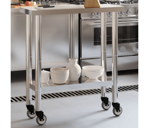 - Elastīga kustība: ēdiena sagatavošanas galdu ar 4 riteņiem var viegli un ērti pārvietot, kur vien nepieciešams. Divi no riteņiem ir bloķējami papildu kontrolei un drošībai.