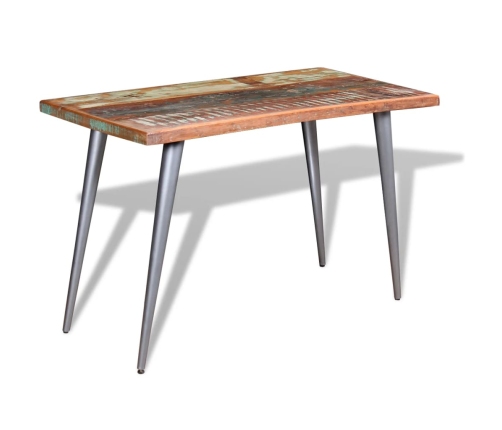 - Materiāls: pārstrādāta masīvkoka galda virsma + tērauda kājas