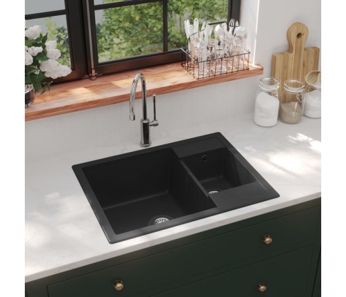 Izlietne ir izgatavota no granīta, tādēļ tā ir siltumizturīga, noturīga pret skrāpējumiem un triecieniem un viegli tīrāma. Sūtījumā ir iekļauts arī izlietnes sietiņš, lai jūs varētu viegli iztīrīt gružus. Drenāžas cauruma diametrs ir 90 mm.