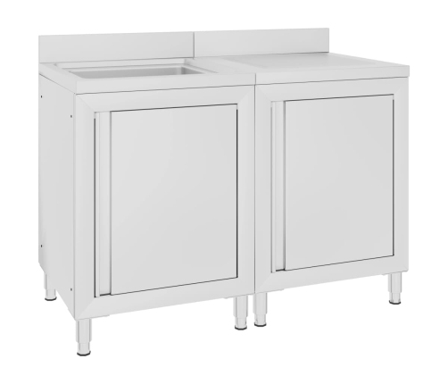 Skapīši ir izgatavoti no kvalitatīva nerūsējošā tērauda, tādēļ tie ir izturīgi, noturīgi pret koroziju un viegli tīrāmi. Apakšējais skapītis nodrošina pietiekami daudz vietas tīrīšanas aprīkojumam un piederumiem. Uz žāvēšanas virsmas jūs varēsiet salikt galda piederumus, šķīvjus un katlus, lai ūdens notecētu, nevis atstātu ūdens traipus. Pateicoties regulējamajām kājām, skapīšus var novietot taisni arī uz nelīdzenām grīdām. Tiem ir arī 10 cm augsts sienas panelis un notekcaurules caurums.