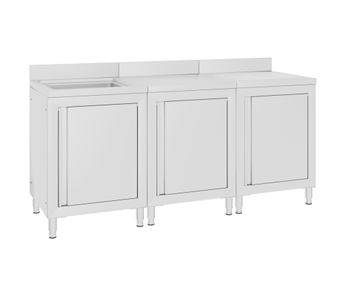 Skapīši ir izgatavoti no kvalitatīva nerūsējošā tērauda, tādēļ tie ir izturīgi, noturīgi pret koroziju un viegli tīrāmi. Uz žāvēšanas virsmas jūs varēsiet salikt galda piederumus, šķīvjus un katlus, lai ūdens notecētu, nevis atstātu ūdens traipus. Apakšējais skapītis nodrošina pietiekami daudz vietas tīrīšanas aprīkojumam un piederumiem. Pateicoties regulējamām kājām, skapīšus var novietot taisni arī uz nelīdzenām grīdām. Tiem ir arī 10 cm augsts sienas panelis un notekcaurules caurums.
