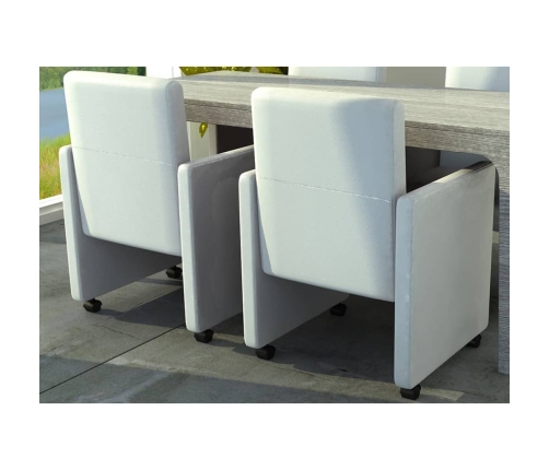 Ēdamistabas krēsli ir apdarināti ar ļoti kvalitatīviem materiāliem, tie ir biezi tapsēti, lai būtu pēc iespējas ērti. Pateicoties to ērtajai sēdvietai, jūs tajos jutīsieties ērti arī vairāku stundu garumā. Ritentiņi palīdzēs pārvietot krēslu daudz vieglāk.