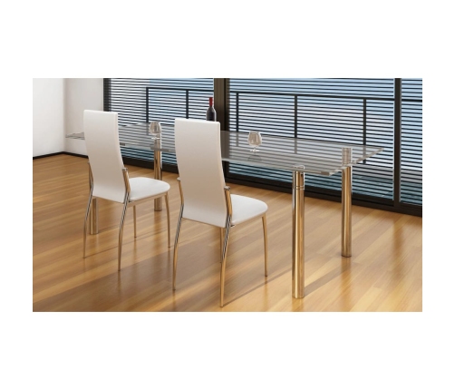 Šie 2 modernā dizaina krēsli ir ergonomiski veidoti lielākām ērtībām. Šie ērtie ēdamistabas krēsli ir kvalitatīvi izstrādāti, tiem ir stabila konstrukcija. Krēsla kājas ir hromētas, un sēdvieta ir izgatavota no izturīgas mākslīgās ādas, kas ir viegli kopjama.