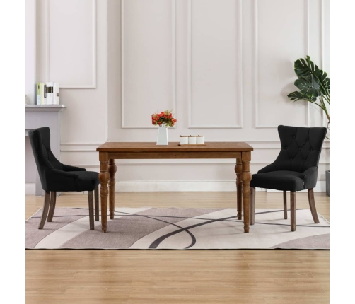 Krēslu atzveltnēm ir skaists iešūtu pogu dizains, kas noteikti piesaistīs uzmanību. Virtuves krēsliem ir izliektas atzveltnes un blīvi polsterēti sēdekļi ar mīksta auduma apdari, tādēļ sēdēšana tajos būs ērta. Turklāt stiprās gumijkoka kājas piešķir krēsliem papildu stabilitāti un nodrošina ilgstošu izturību.
