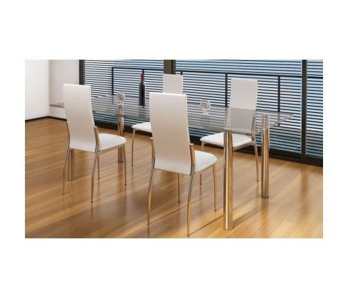 Šie 4 modernā dizaina krēsli ir ergonomiski veidoti lielākām ērtībām. Šie ērtie ēdamistabas krēsli ir kvalitatīvi izstrādāti, tiem ir stabila konstrukcija. Krēsla kājas ir hromētas, un sēdvieta ir izgatavota no izturīgas mākslīgās ādas, kas ir viegli kopjama.
