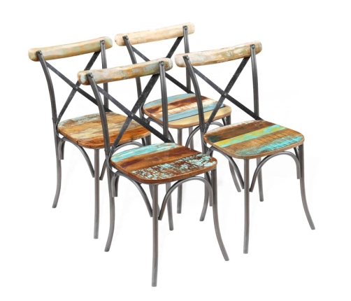 Šie 4 antīkā stila virtuves krēsli no pārstrādāta koka būs unikāls jūsu virtuves vai ēdamistabas papildinājums.