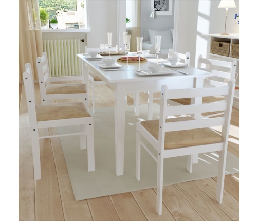 Šis komplekts sastāv no sešiem klasiska stila koka virtuves krēsliem, kas lieliski papildinās jūsu ēdamistabas vai virtuves interjeru.