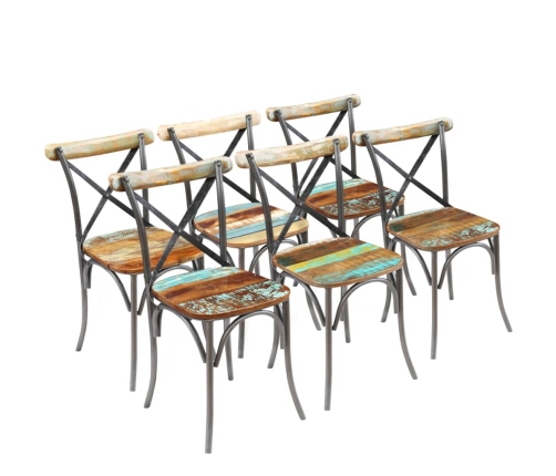 Šie 6 antīkā stila virtuves krēsli no pārstrādāta koka būs unikāls jūsu virtuves vai ēdamistabas papildinājums. Krēsliem ir tērauda rāmji, tāpēc tie ir stabili un izturīgi.