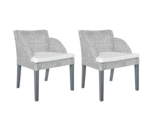 Šie dabīgās rotangpalmas virtuves krēsli ar biezi polsterētiem spilveniem lieliski papildinās jūsu interjeru.