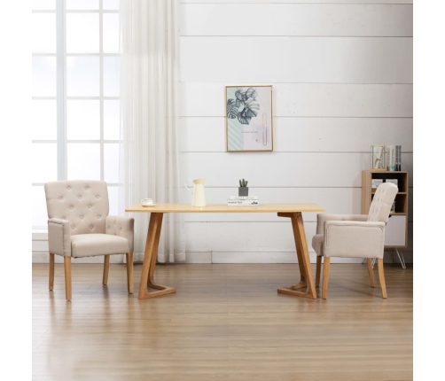 Krēsla apdare ir veidota no bieza, pieskārienam patīkama auduma, tādēļ atpūtas vai maltītes ieturēšanas laikā jūs tajā jutīsieties ļoti ērti. Krēsla ergonomiskais dizains ar iešūtajām pogām tam piešķir papildu komfortu un skaistu šarmu. Pateicoties gumijkoka kājām, krēsls ir stabils un izturīgs.