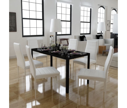 Šim septiņdaļīgajam virtuves galda un krēslu komplektam ir elegants un moderns dizains. Tas noderēs ikvienam, kas vēlas stilīgi papildināt savu interjeru.
