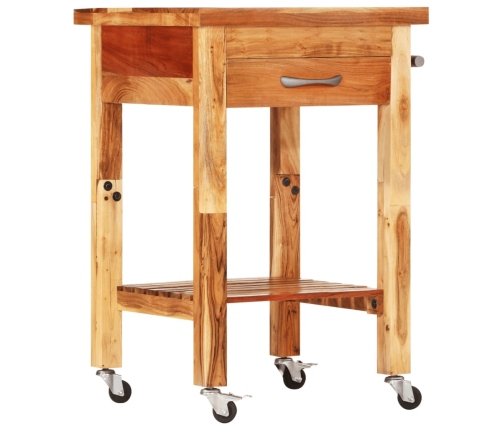 - Daudzas funkcijas: koka virtuves ratiņiem ir atvilktne un apakšējais plaukts, kas nodrošina ērtu vietu bļodām, šķīvjiem, pavārgrāmatām un citām virtuves ierīcēm. Uz sānā esošā statīva var parocīgi novietot dvieļus.