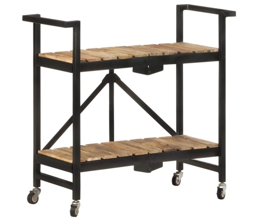 Virtuves ratiņi ir izgatavoti no mango masīvkoka - īpaši izturīga tropu cietkoka, kas iztur svaru, laika radītu nodilumu, kā arī ir stabils un izturīgs. Pateicoties smalkajam meistara darbam un skaistajai koka tekstūrai, ratiņi cits no cita nedaudz atšķiras. Īpašu izturību ratiņiem piešķir pulverkrāsotais tērauda rāmis. Šajos uzglabāšanas ratiņos ir 2 nodalījumi, kuros varēs ērti un viegli sasniedzami novietot ēdienu, pudeles un citas nepieciešamas lietas. Pateicoties saliekamajam dizainam, ratiņus var viegli uzglabāt, kad tos nelieto. Virtuves plauktam ir elastīgi riteņi ērtai pārvietošanai.