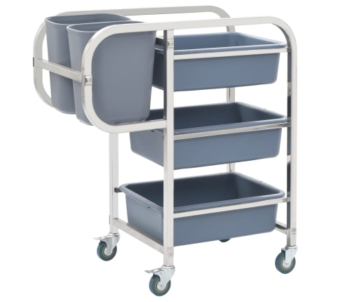 Plastmasas konteineros būs daudz vietas traukiem un ēdienu pārpalikumiem. Pateicoties nerūsējošā tērauda rāmim, ratiņi ir stabili un izturīgi pat pie pilnas slodzes. Ratiņiem ir vienmērīgi ritoši riteņi, tādēļ to pārvietošana ir klusa un viegla. Diviem riteņiem ir bremzes, lai ratiņi nejauši neizkustētos. Tajos var glabāt arī instrumentus un citas mājsaimniecībā nepieciešamās lietas.