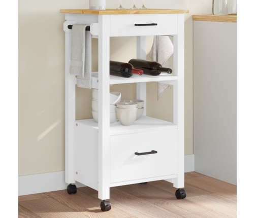 - Izturīgs materiāls: priedes masīvkoks ir skaists un dabisks materiāls. Priedes koksnei ir taisnu līniju tekstūra ar mezgliņiem, kas piešķir materiālam īpašu raksturu un dabisku izskatu. Šie priedes masīvkoka virtuves ratiņi ir stabili un izturīgi.