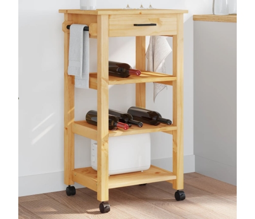 - Izturīgs materiāls: priedes masīvkoks ir skaists un dabisks materiāls. Priedes koksnei ir taisnu līniju tekstūra ar mezgliņiem, kas piešķir materiālam īpašu raksturu un dabisku izskatu. Šie priedes masīvkoka virtuves ratiņi ir stabili un izturīgi.