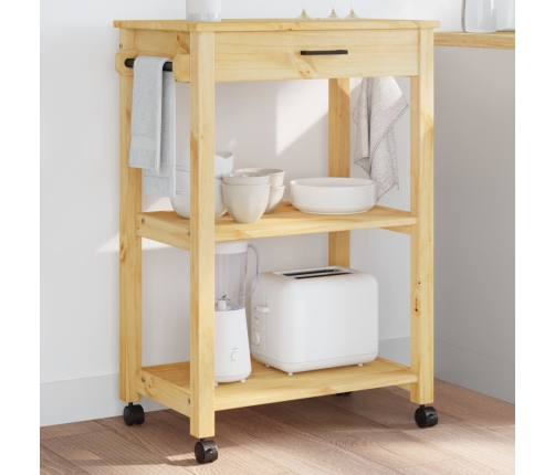 - Izturīgs materiāls: priedes masīvkoks ir skaists un dabisks materiāls. Priedes koksnei ir taisnu līniju tekstūra ar mezgliņiem, kas piešķir materiālam īpašu raksturu un dabisku izskatu. Šie priedes masīvkoka virtuves ratiņi ir stabili un izturīgi.