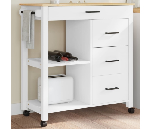 - Izturīgs materiāls: priedes masīvkoks ir skaists un dabisks materiāls. Priedes koksnei ir taisnu līniju tekstūra ar mezgliņiem, kas piešķir materiālam īpašu raksturu un dabisku izskatu. Šie priedes masīvkoka virtuves ratiņi ir stabili un izturīgi.