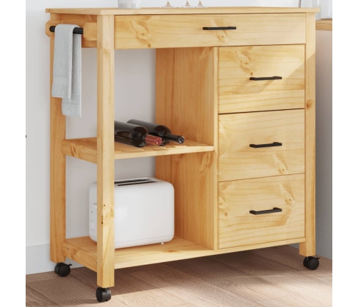 - Izturīgs materiāls: priedes masīvkoks ir skaists un dabisks materiāls. Priedes koksnei ir taisnu līniju tekstūra ar mezgliņiem, kas piešķir materiālam īpašu raksturu un dabisku izskatu. Šie priedes masīvkoka virtuves ratiņi ir stabili un izturīgi.