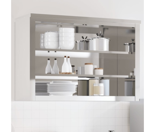 - Izturīga un stabila konstrukcija: sienas skapītis ir izgatavots no nerūsējošā tērauda, kas nodrošina izturību pret koroziju un rūsu. Gludā virsma ir viegli tīrāma un kopjama, nodrošinot higiēnisku zonu ēdiena glabāšanai.