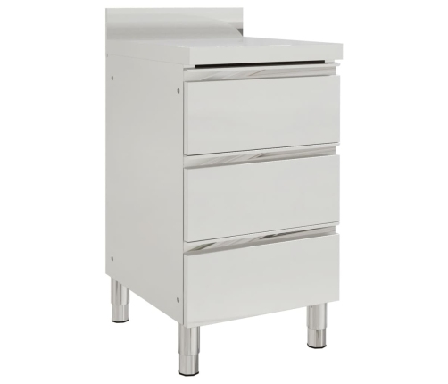 Skapītis ir izgatavots no kvalitatīva nerūsējošā tērauda, tādēļ tas ir izturīgs, noturīgs pret koroziju un viegli tīrāms. Tā 3 atvilktnes nodrošina pietiekami daudz vietas tīrīšanas aprīkojumam un piederumiem. Pateicoties regulējamām kājām, skapīti var pielāgot taisnā līmenī arī uz nelīdzenām grīdām. Tam ir 10 cm augsts sienas panelis un notekcaurules caurums.