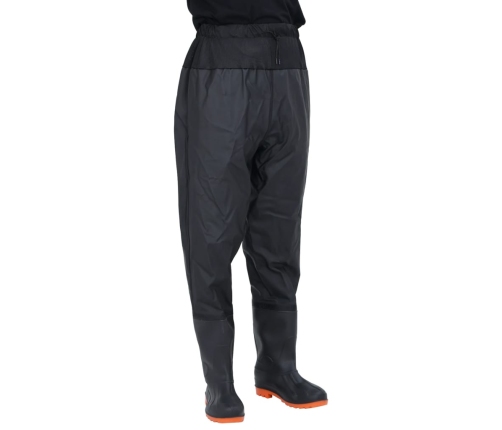 - Ūdensizturīgs: šis poliestera audums ar īpašu pārklājumu ir patīkams iekšpusē un izturīgs ārpusē. Pateicoties stepētajām un līmētajām šuvēm un piestiprinātajiem zābakiem, šie zvejnieku zābaki ir ūdensizturīgi.