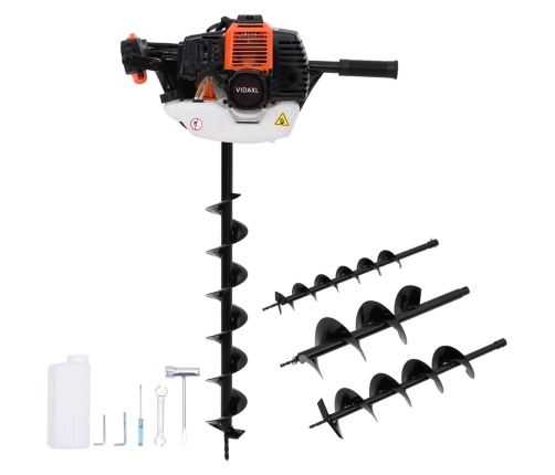 Šī benzīna zemes urbja komplektā iekļauti 3 dzelzs zemes urbji, 1 kanniņa, 1 urbja uzstādīšanas komplekts un 1 instrumentu komplekts. Visiem 3 urbjiem ir atšķirīgs diametrs, lai jūs varētu izvēlēties piemērotāko izmēru atkarībā no veicamā uzdevuma.