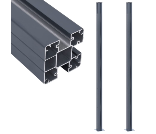 Dārza žoga stabi ar uzgaļiem ir izgatavoti no alumīnija, kas ir noturīgs pret dažādiem laikapstākļiem. Stabi ir piemēroti 2 cm bieziem žoga paneļiem. Pateicoties stabos esošajiem ieliktņiem, ar tiem var izveidot taisnu žogu vai žogu ar 90 grādu stūri.
