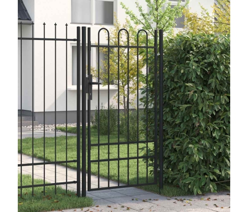 Dārza vārti ar vertikāliem stieņiem, arkveida formu un stipriem horizontāliem fiksatoriem, kas pastiprina rāmi, nodrošinās augsta līmeņa drošību un privātumu un veidos skaistu ieeju jūsu īpašumā. Vārti ir izgatavoti no īpaši izturīga tērauda, tādēļ tie būs ļoti stabili un izturīgi, savukārt pulverkrāsas pārklājums tos pasargās no rūsēšanas un korozijas.