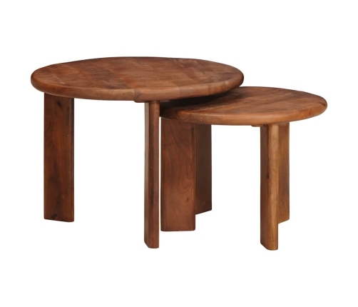 Forma: Apaļais dizains piešķir mīkstu, aicinošu sajūtu, kas perfekti saskan ar mūsdienu interjeru. To forma ļauj viegli iekļauties dzīvojamās istabas izkārtojuma idejās, radot vietu sanākšanai vai patīkām stundām ar grāmatu. Nesting funkcija: Šie galdi ir izstrādāti efektīvai ligzdošanai, ļaujot dažādus izkārtojumus. Kad tie nav vajadzīgi, tie var tikt sakrauti, tādējādi taupot vietu, kas ir noderīgi mazākiem dzīvokļiem. Mūsdienu estētika: Šie galdi ir ar tīrām līnijām un minimālu rotājumu, kas nodrošina moderno dizaina principu piemērošanu. Tie ne tikai papildina, bet arī uzlabo dažādus dekoratīvos stilus, radot savienojumu ar savu eleganto skatu. Iekštelpās lietošana: Domāti tikai iekštelpām, šie galdi nodrošina stilīgu un funkcionālu virsmu dzīvojamajā telpā. To konstrukcija garantē, ka tie ir neatņemams iekštelpu dekorācijas elements, īpaši dzīvojamās istabās. Montāžas detaļas: Montāžai nepieciešami divi cilvēki un skrūvgriezis, koncentrējoties uz vienkāršām procedūrām. Iekļautās instrukcijas un nepieciešamās sastāvdaļas atvieglo montāžu, nodrošinot, ka galdi ir ātri un viegli sastāvami.- Krāsa: Medus brūns