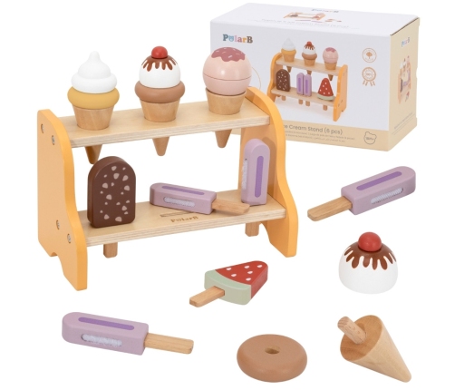Ten uroczy zestaw zawiera 6 kolorowych lodów od marki VIGA– 3 rożki i 3 lody na patyku – ozdobione kultowymi wzorami, które zachwycą każde dziecko. Dwuwarstwowy, drewniany stojak pozwala eksponować lody i utrzymać porządek podczas zabawy. Wyjmowane elementy stymulują małą motorykę i rozwijają zabawę dotykową. Idealny do kreatywnego odgrywania ról – np. własnego straganu z lodami!