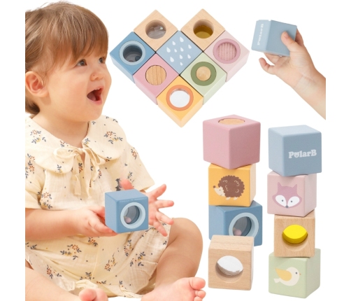 Odkryj świat niekończącej się zabawy i odkrywania z tymi 8-elementowymi, sensorycznymi, drewnianymi klockami. Zaprojektowane, aby stymulować dotyk, wzrok i słuch, każdy klocek ma unikalną fakturę, lusterko, dzwoneczek lub grzechotkę. Klocki są idealne dla małych rączek, bezpieczne, trwałe i pięknie zaprojektowane, wspierają rozwój sensoryczny, małą motorykę i wyobraźnię Twojego dziecka.