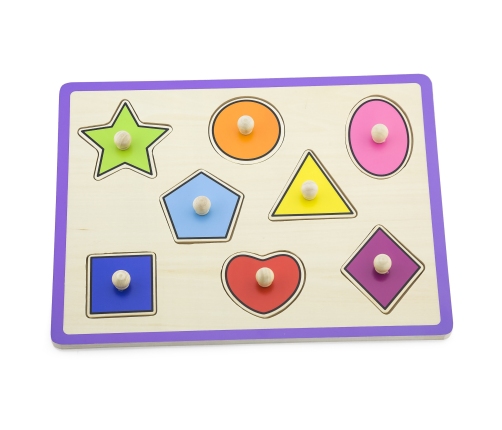 Drewniane Puzzle od firmy Viga to jedna z czołowych zabawek, która posłuży nie tylko jako tradycyjna układanka, ale pozwoli dziecku ćwiczyć zdolności manualne oraz rozpoznawanie kształtów. Taka gra dla dziecka od 18 miesiąca życia pomoże kształtować precyzję ruchów rączek, oraz poprawić koordynację wzrokowo-ruchową. Kolorowe puzzle cieszą oko i zachęcają do zabawy. W zestawie znajduje się 8 puzzli w różnych kolorach o różnych kształtach. Puzzle posiadają uchwyty, dzięki którym maluch z łatwością będzie mógł je podnosić.