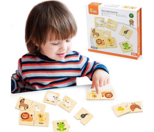 Drewniana Układanka od marki VIGA pozwoli na zabawę w dopasowanie 12 dorosłych zwierząt i ich maluchów. Dzięki zabawie dzieci rozwiną swoje słownictwo, koncentrację, zdolności motoryczne i logiczne myślenie poprzez dopasowanie i odkrywanie połączeń.