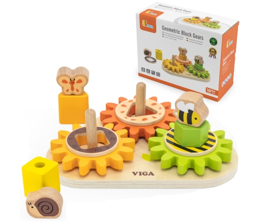 Drewniany sorter "Kształty i Mechanizmy" od renomowanej marki Viga to doskonała zabawka edukacyjna dla dzieci, która łączy naukę z zabawą. Doskonale ćwiczy pamięć, spostrzegawczość oraz uczy rozpoznawania kolorów. Sorter zaprojektowany jest w całkowicie bezpieczny dla dzieci sposób - nie posiada ostrych krawędzi, ani niebezpiecznych elementów. Przyjemne dla oka kolory, przez długi czas będą cieszyć twoje dziecko podczas zabawy. Sortowanie klocków może być wyzwaniem, zwłaszcza dla najmłodszych. Dziecko uczy się cierpliwości i wytrwałości, próbując dopasować elementy - wymaga to precyzji i koordynacji ruchowej. To doskonałe ćwiczenie dla małych rączek. Zabawa może służyć jako sorter- dziecko samodzielnie układa elementy na kołeczkach, tworząc własne wyjątkowe konstrukcje. Dodatkowo zębatki są zaprojektowane w taki sposób, że obrót jednej powoduje ruch pozostałych. Zabawka pomoże w poznaniu podstawowych praw fizyki - działanie koła zębatego. Przy zakręceniu pierwszym kołem następuje wprawianie dalszych elementów w ruch i przekazywanie siły kolejnym zębatkom.