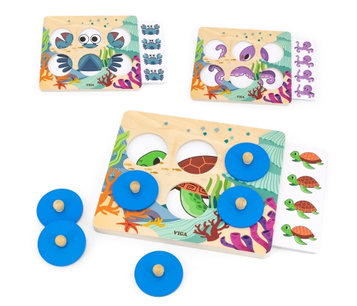 Zasady: włóż kartę w drewnianą planszę, podnieś kółko za uchwyt, zobacz element wzoru i zgaduj, do którego z czterech obrazków pasuje ukryte zwierze. Jeżeli nie jesteś w stanie odgadnąć, podnieś kolejne kółko, pod którym kryją się szczegóły.