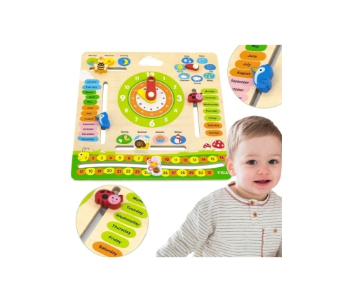 Ten edukacyjny kalendarz to idealna zabawka do nauki o upływającym czasie, zmianach pogody i porach roku. Dzięki kolorowym, ruchomym elementom dzieci mogą codziennie dostosowywać datę, wybierać odpowiednią pogodę i porę roku, a także uczyć się pojęć związanych z czasem. Można go zawiesić na ścianie lub postawić na biurku, co sprawia, że będzie zarówno funkcjonalnym, jak i dekoracyjnym elementem w pokoju dziecka.