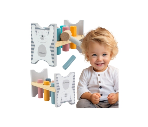 - - Zestaw zawiera podstawkę, 6 kolorowych kołków, młoteczek do wbijania
